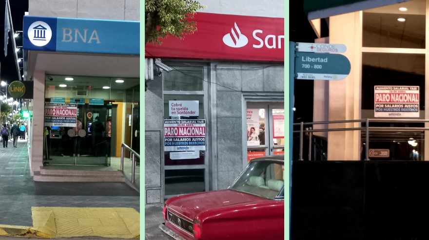 “Este jueves el paro de actividades en todos los bancos del país se dará en reclamo de mejoras salariales ante el rápido avance de la inflación que lleva acumulado un 16% solo en el primer trimestre y anticipan que tiene un piso del 5% para abril”, aseguraron voceros. Es “en defensa del salario y los legítimos derechos que nos corresponden”, agregaron.