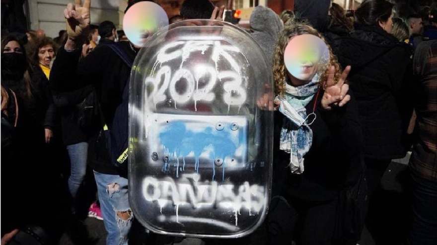 La imagen del escudo policial como "trofeo de guerra" de la militancia recorrió las redes. ¿Vos que pensas?