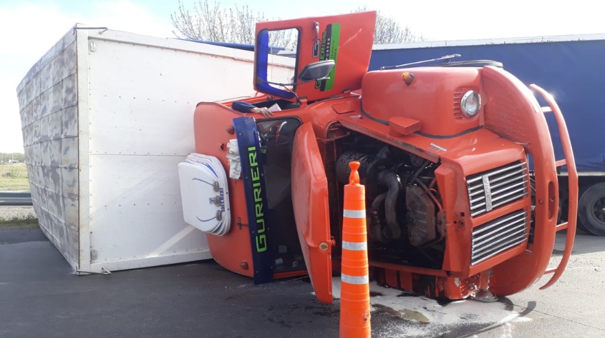 El camión que volcó, era un Scania con patente TAM 368 con un semi remolque (TAI235) cargado con alimento balanceado que perdió el control durante el giro. El conductor del camión fue identificado como Ceferino Lopez, quien fue trasladado al nosocomio local con heridas leves.