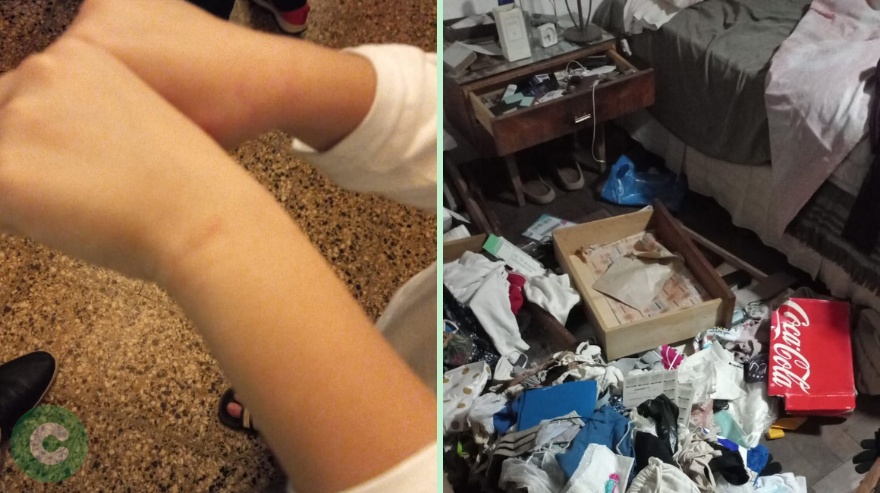 Mabel es la madre de Mariana y abuela del pequeño de 11 años que también fueron víctimas en este robo. Los delincuentes los ataron de pies y manos. A Mariana por ejemplo le ataron los pies con precintos y sus manos con pañuelos. El niño quedó con marcas en sus muñecas porque fue atado con alambres.