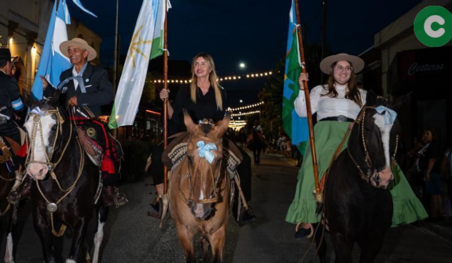 A las 19 se dio inicio formal al desfile, previo al cual se entregaron reconocimientos a Carlos Loray, por su trayectoria como escritor gauchesco y su aporte sostenido a la cultura y la comunidad local, y otro a la familia de Mario Díaz, en homenaje a su legado y compromiso con la identidad y la historia de Cañuelas.