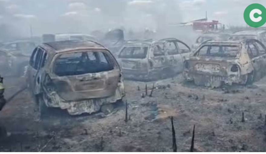 Este mediodía se registró un incendio de gran magnitud en un predio de automóviles ubicado en el kilómetro 73.500 de la Ruta 205, a la altura del barrio El Taladro. El fuego afectó a un depósito de dos hectáreas que alberga unos 600 vehículos y varios tinglados con materiales.