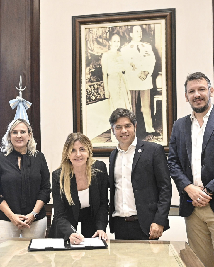 En el acto realizado en el Salón de los Acuerdos de Casa de Gobierno estuvo presente el gobernador Axel Kicillof, el presidente del Banco Provincia, Juan Cuattromo, y Valeria Dallera, presidenta de Provincia Leasing.