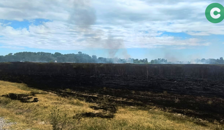 Varias dotaciones de bomberos trabajaron intensamente en la zona de campos ubicada entre el Camino Panelo, Barrio Las Rosas, en cercanías del Hospital local Ángel Marzetti.