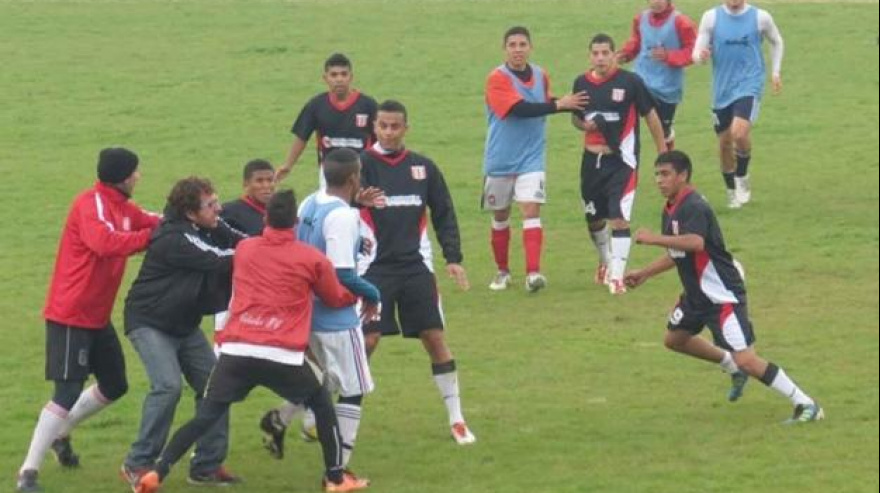 Rivadavia estaba ofreciendo un juego brusco, y la bomba explotó a falta de 5 minutos para terminar. Cesar Peralta reaccionó con un golpe de puño luego de una dura entrada de un jugador visitante, a partir de ahí se originó una batalla campal entre ambos conjuntos, titulares y suplentes se trenzaron con golpes, patadas y hasta algún pelotazo, por momentos se tornó incontrolable para los dirigentes y cuerpos técnicos que intentaron separar. Cuando se calmaron los ánimos, Di Ciancio pegó unos cuantos gritos que retumbaron por los cuatro costados del Arín, el DT estaba enfurecido y sin entender como un amistoso había terminado en una contienda de catch.