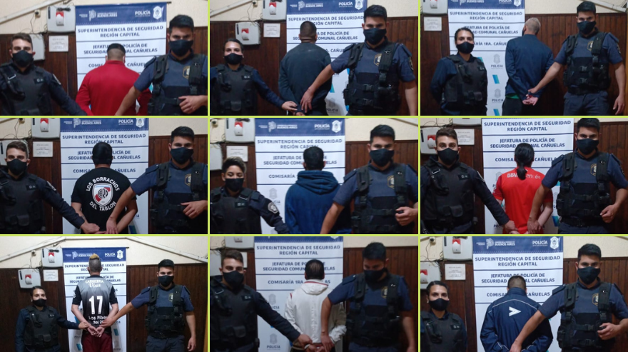 Tres de los aprehendidos tienen domicilio en Merlo; otros cuatro tienen domicilio en Morón; y otros dos en La Matanza. Las edades van desde los 23 a los 50 años.