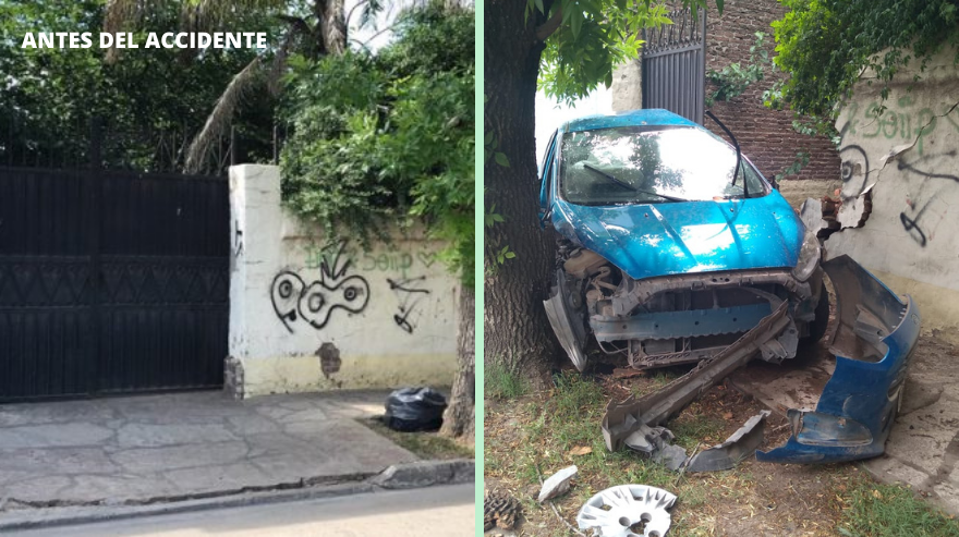 En la madrugada del viernes, alrededor de las 3am., un vehículo se incrustó en un portan cuando dobló por calle Libertad en sentido a calle Ameghino.