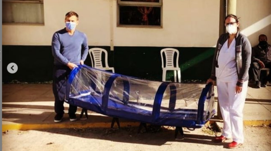 Referentes del Rotary club de Cañuelas entregaron una camilla para el traslado de pacientes Covid 19, a las autoriades del Hospital Angel Marzetti.