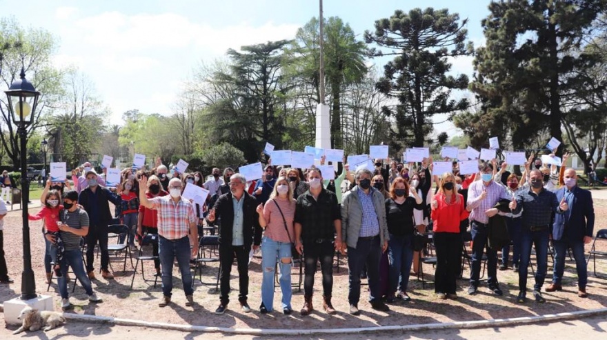 La entrega de certificados y aportes se realizó en la Plaza Centenario, y estuvo acompañada por el secretario de Cultura Esteban Sarlenga, el subsecretario de Planeamiento y Desarrollo Marcelo Di Giácomo, el director Asociado del Hospital Dardo Rocha, Leonel Fangio; y autoridades a cargo de las diplomaturas brindadas por la UNDAV y la UNLZ.